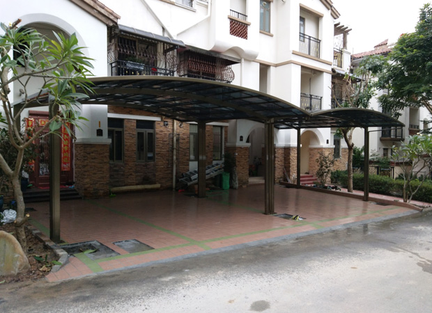 款式選擇:?jiǎn)芜吺杰?chē)棚、合抱式車(chē)棚、斜拉式車(chē)棚、歐式S型車(chē)棚