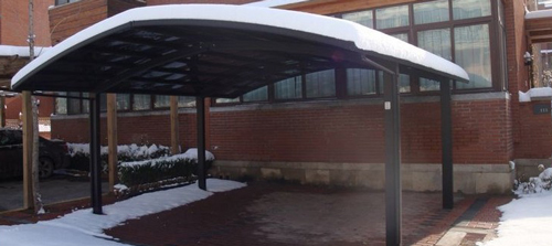頂棚采用進(jìn)口聚碳酸酯板,抗沖擊是玻璃的數(shù)百倍,有效防止高空墜物