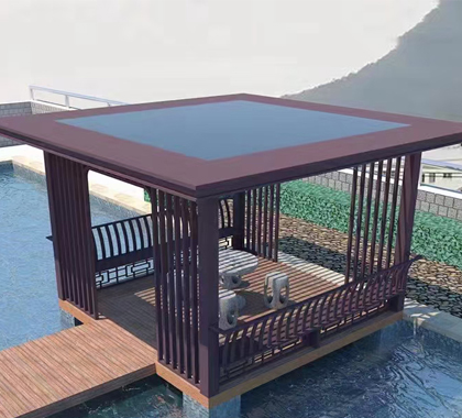 7、新中式鋁合涼亭顏色豐富,可供選擇的顏色眾多。既具有天然木質感和木質紋理,又可以根據自己的個性來定制需要的顏色。 8、新中式鋁合涼亭低碳環保,無污染、無公害、可循環利用。原材料不含苯,不含甲醛,歐洲頂級環保標準制造!節約能源,符合可持續發展的國策,造福社會。