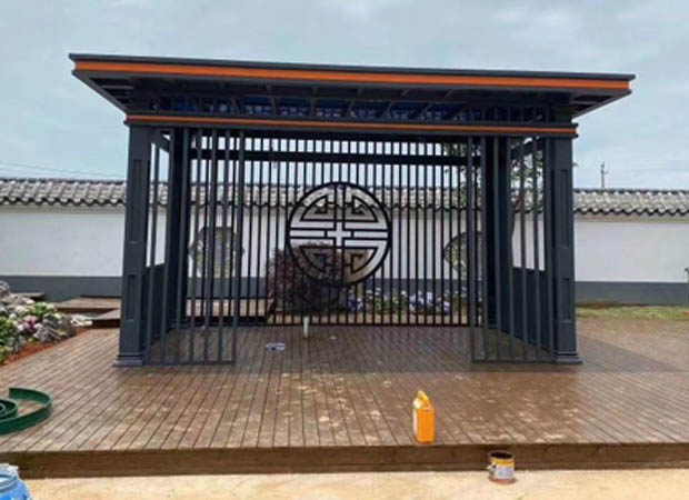 6、新中式鋁合涼亭防火阻燃,徹底解決木質(zhì)類產(chǎn)品容易燃燒,存在安全隱患的難題。