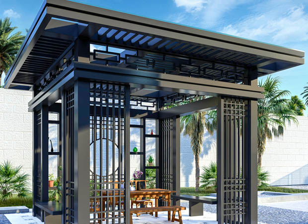 1、新中式鋁合金涼亭安裝簡單,施工便捷,不需要繁雜的施工工藝,節(jié)省安裝時(shí)間和費(fèi)用。