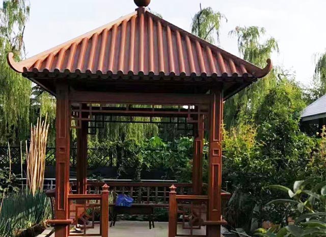 近些年來,鋁制涼亭受到了很多人的青睞,因為鋁制涼亭材質硬不易老化,后期基本不用維護,其外觀經過木紋處理轉印后,質地顏色都和木頭很相似,從遠處更是看不出來區別,經風摧日曬也不易掉色、老化、干裂,而這些在木制涼亭中都無法避免。而且鋁制涼亭建造后牢固性也很好!