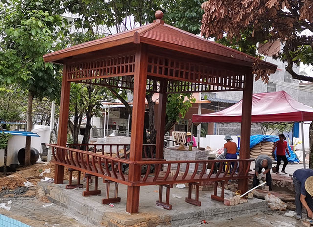 近些年來,鋁制涼亭受到了很多人的青睞,因為鋁制涼亭材質硬不易老化,后期基本不用維護,其外觀經過木紋處理轉印后,質地顏色都和木頭很相似,從遠處更是看不出來區別,經風摧日曬也不易掉色、老化、干裂,而這些在木制涼亭中都無法避免。而且鋁制涼亭建造后牢固性也很好!