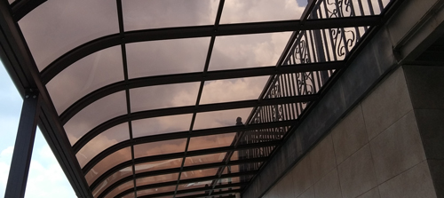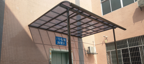 頂棚采用進口聚碳酸酯板,抗沖擊是玻璃的數百倍,有效防止高空墜物