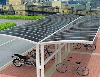 鋁合金車棚的主體骨架悉數選用鈦鋁合金,外表處理選用靜電粉末噴涂工藝,耐腐蝕。棚頂資料選用進口的聚碳酸酯板(又稱PC耐力板、PC陽光板),能夠吸收陽光中的紫外線。十分合適維護各類車、藝術品和貴重物品,免受紫外線傷害。