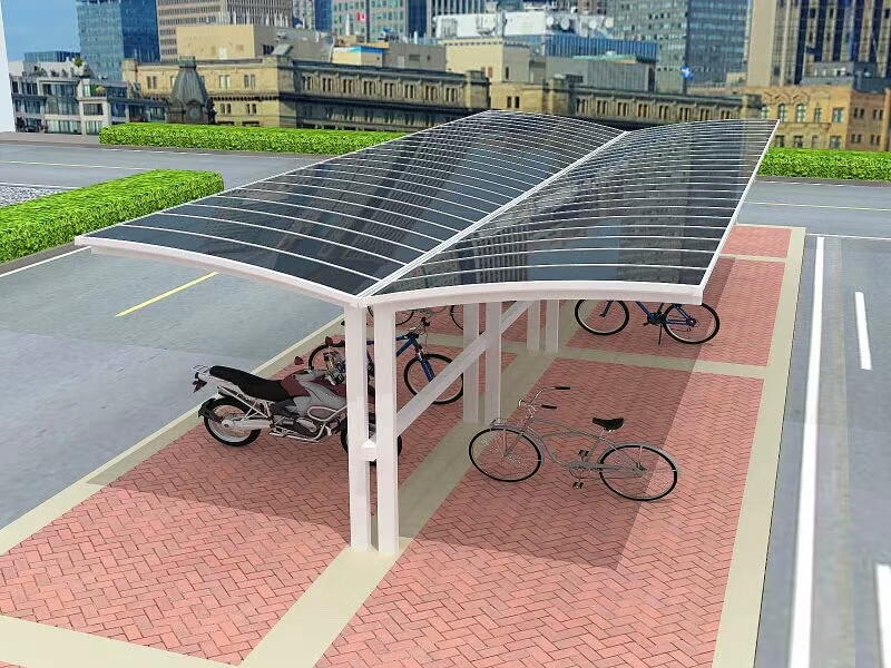 自行車棚作為城市公交設施綠色出行的一部分,是市民停放自行車的固定場所,自行車棚的建設單位打造城市低碳交通,為了還城市一個健康清新的環境,市民要加強意識,從而達到減少低碳元素類,特別是二氧化碳的排放量,從而減少對大氣的污染,減緩生態惡化,市政府應設立自行車棚,為市民能實現綠色低碳環保的環境提供場所。鋁合金自行車棚是目前備受歡迎的車棚類型,在國外已逐漸應用于體別墅小區,企業工廠,政府單位等建筑中。
