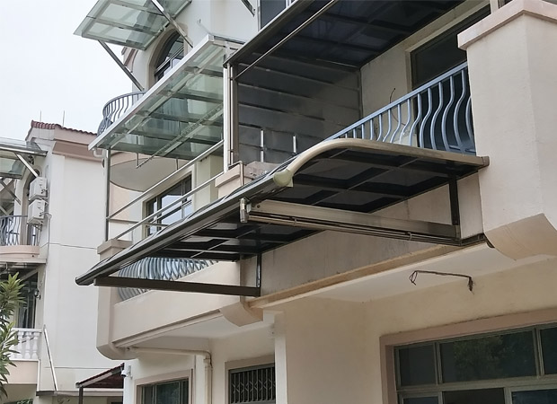 頂棚采用進(jìn)口聚碳酸酯板,抗沖擊是玻璃的數(shù)百倍,有效防止高空墜物