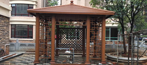而近些年來,鋁制涼亭受到了很多人的青睞,因為鋁制涼亭材質硬不易老化,后期基本不用維護,其外觀經過木紋處理轉印后,質地顏色都和木頭很相似,從遠處更是看不出來區別,經風摧日曬也不易掉色、老化、干裂,而這些在木制涼亭中都無法避免。而且鋁制涼亭建造后牢固性也很好!