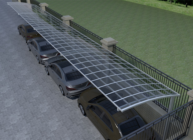 頂棚采用進(jìn)口聚碳酸酯板,抗沖擊是玻璃的數(shù)百倍,有效防止高空墜物