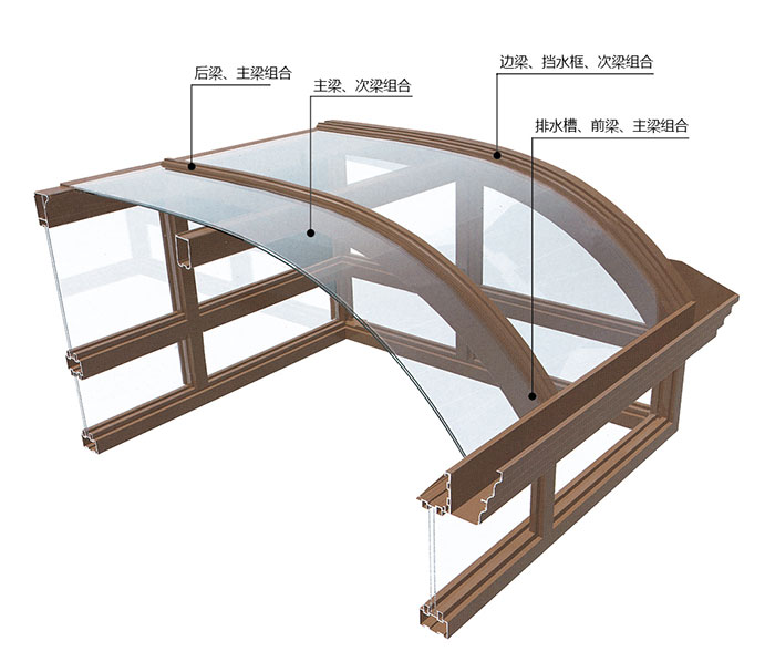 頂部側面:中空玻璃、夾膠玻璃,隔熱隔音