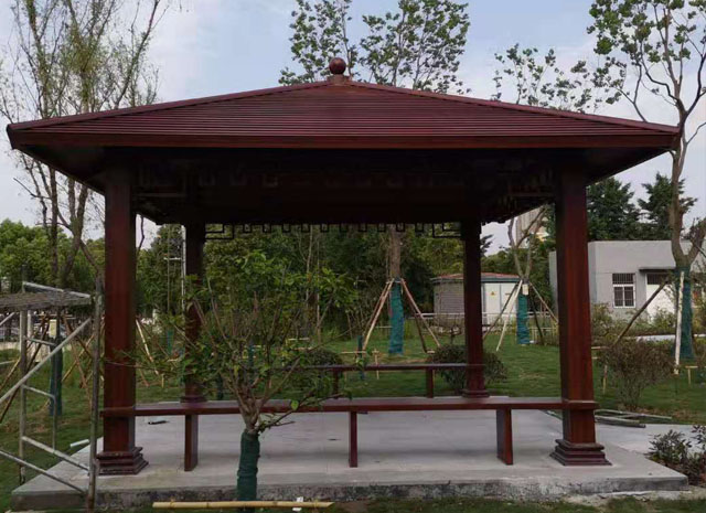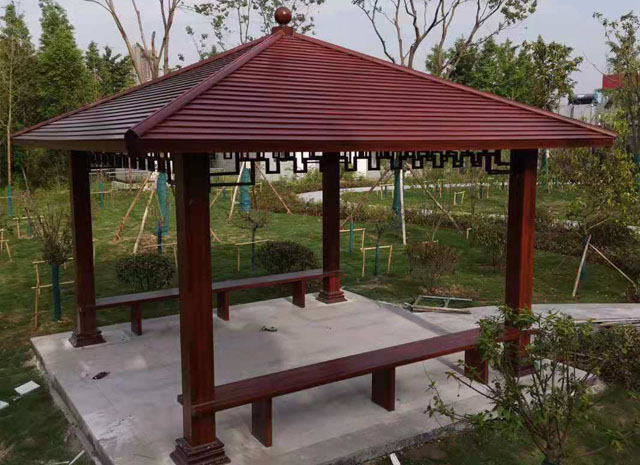 近些年來,鋁制涼亭受到了很多人的青睞,因為鋁制涼亭材質硬不易老化,后期基本不用維護,其外觀經過木紋處理轉印后,質地顏色都和木頭很相似,從遠處更是看不出來區別,經風摧日曬也不易掉色、老化、干裂,而這些在木制涼亭中都無法避免。而且鋁制涼亭建造后牢固性也很好!