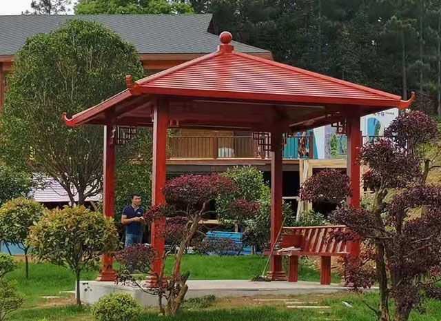 涼亭,傳統結構單體建筑之一。因為造型輕巧,選材不拘,布設靈活而被廣泛應用在園林建筑之中。是人們憑借一定材料建造出來的,而材料的特性,也必然會對建筑的造型風格產生影響。所以,涼亭的造型藝術,也在一定程度上取決于所選用的材料。由于各種材料性能的差異,因此,不同材料建造的涼亭,就各自帶有非常顯著的不同特色。