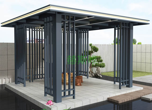 1、新中式鋁合金涼亭安裝簡單,施工便捷,不需要繁雜的施工工藝,節省安裝時間和費用。