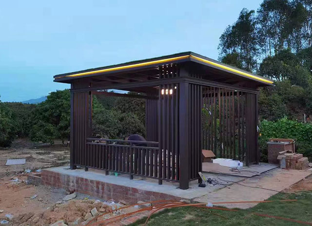 1、新中式鋁合金涼亭安裝簡單,施工便捷,不需要繁雜的施工工藝,節省安裝時間和費用。