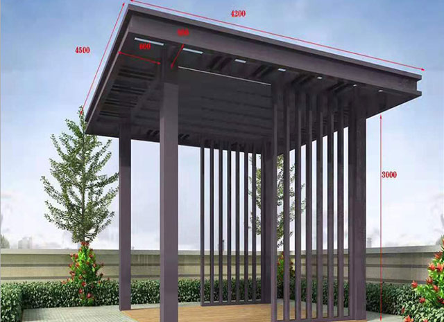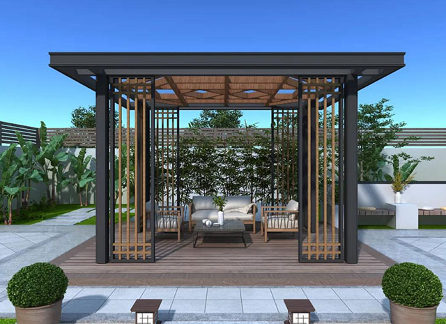 7、新中式鋁合涼亭顏色豐富,可供選擇的顏色眾多。既具有天然木質感和木質紋理,又可以根據自己的個性來定制需要的顏色。