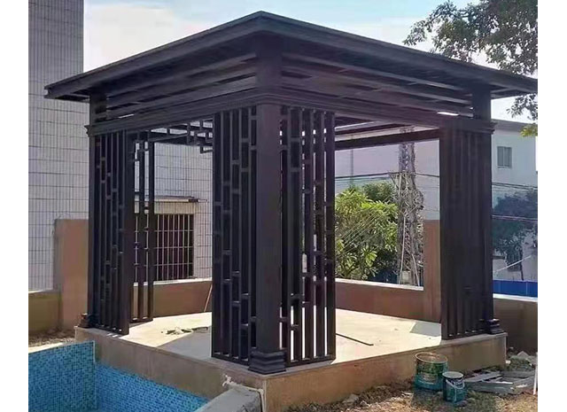 7、新中式鋁合涼亭顏色豐富,可供選擇的顏色眾多。既具有天然木質感和木質紋理,又可以根據自己的個性來定制需要的顏色。