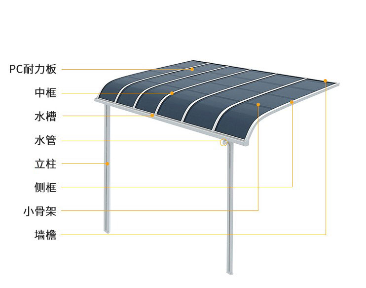 頂棚:聚碳酸酯板材,抗沖擊比玻璃強