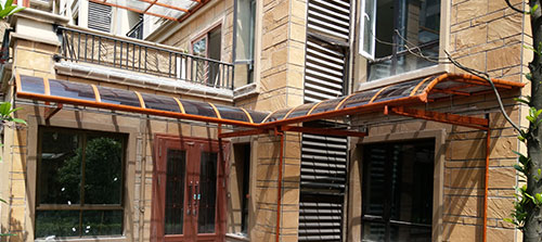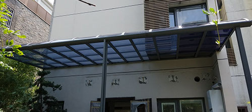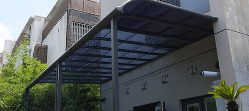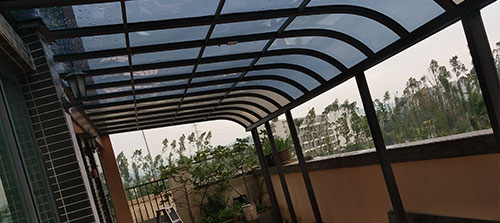 頂棚采用進口聚碳酸酯板,抗沖擊比玻璃強,有效防止高空墜物